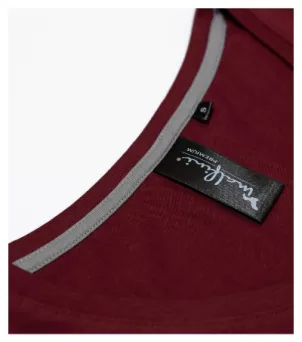elastyczna tkanina utrzymująca kształt, krój slim-fit ze szwami bocznymi, lamówka w kształcie V, wąska lamówka z dzianiny ściągaczowej 1:1 z dodatkiem 5 % elastanu, lamówka na karku wzmocniona kontrastową taśmą, szew wzmacniający na ramionach, krótkie, dopasowane rękawy