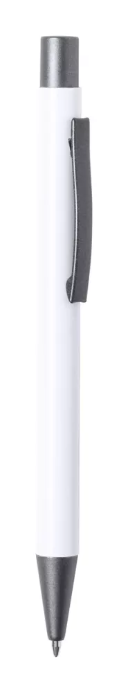 Długopis z aluminium pochodzącego z recyklingu z elementami w kolorze ciemnoszarej stali. Z niebieskim wkładem.