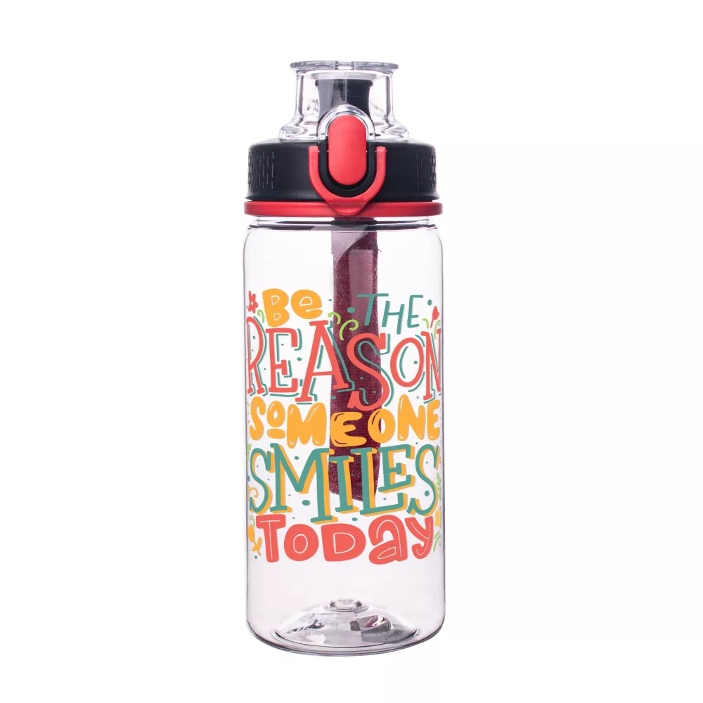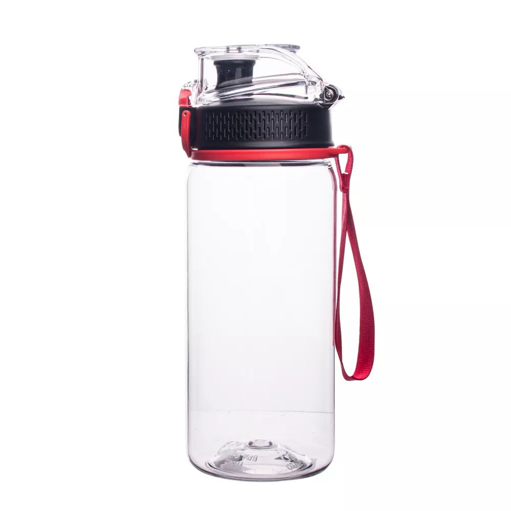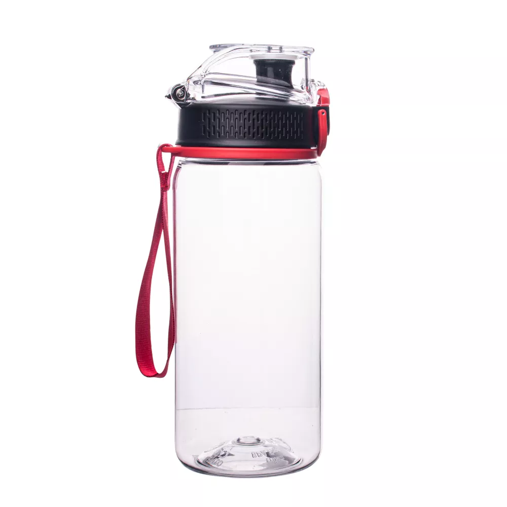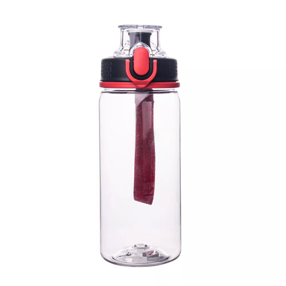 Bidon wykonany z tritanu - materiału, który jest w pełni bezpieczny, lekki, nietłukący, nie powoduje zmiany smaku przechowywanych napojów, chroni napój przed promieniowaniem UV. Dzięki występującej w kilku opcjach kolorystycznych, wykonanej z materiału smyczy na nadgarstek stanowi idealny upominek nie tylko dla osób aktywnych. Dodatkowo posiada zabezpieczenie manualne uniemożliwiające przypadkowe otwarcie.