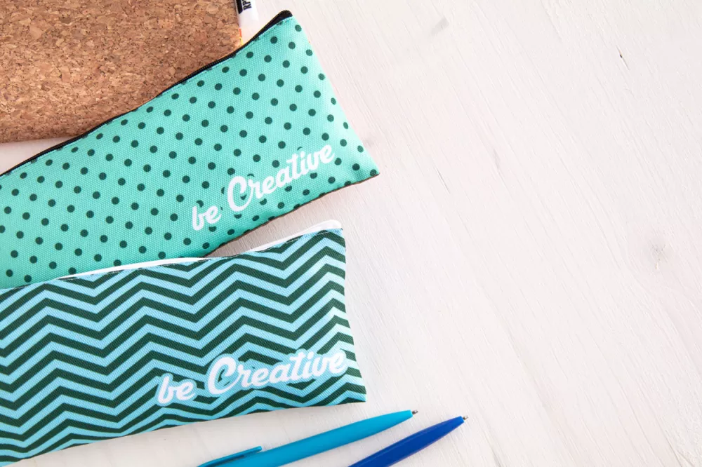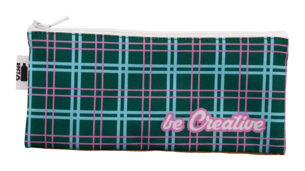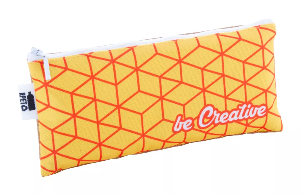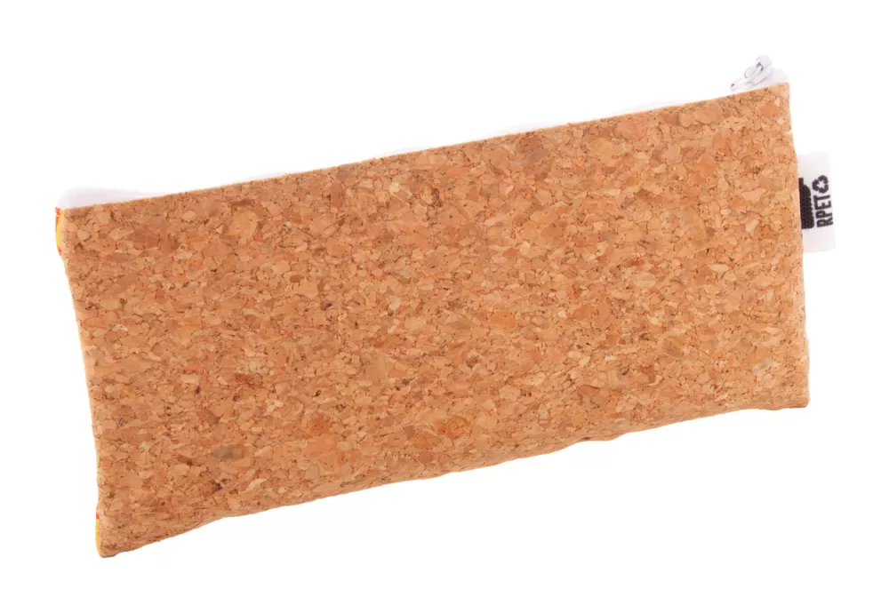 Personalizowany, zapinany na zamek piórnik z poliestru 600D RPET z tyłem z naturalnego korka. Z nadrukowaną sublimacyjną grafiką z przodu i metką RPET. Min. ilość: 50 szt.