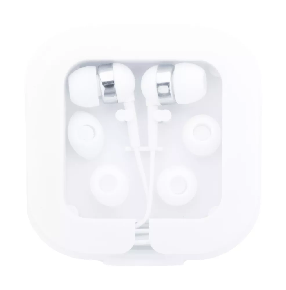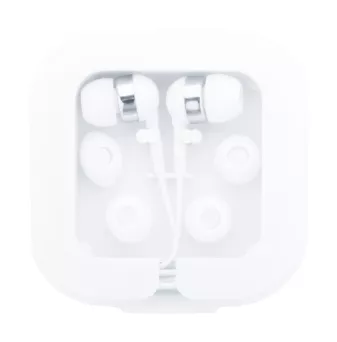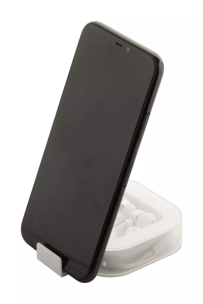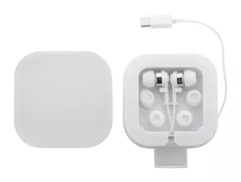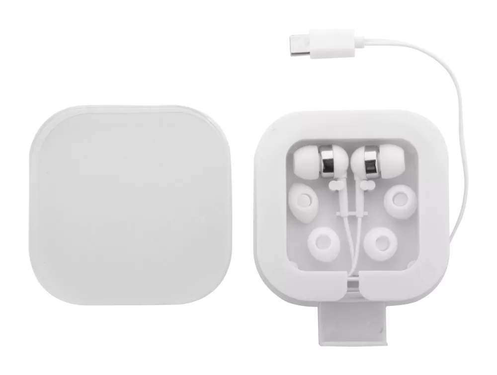 Słuchawki douszne z cyfrowym złączem USB-C i 3 parami wkładek dousznych, w plastikowym etui z funkcją uchwytu na telefon.