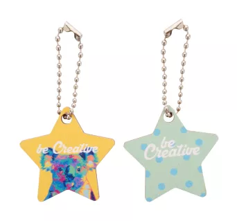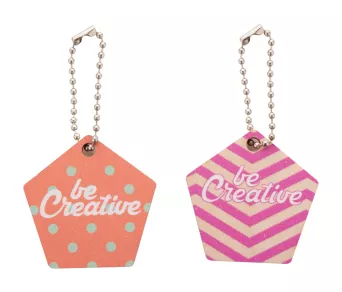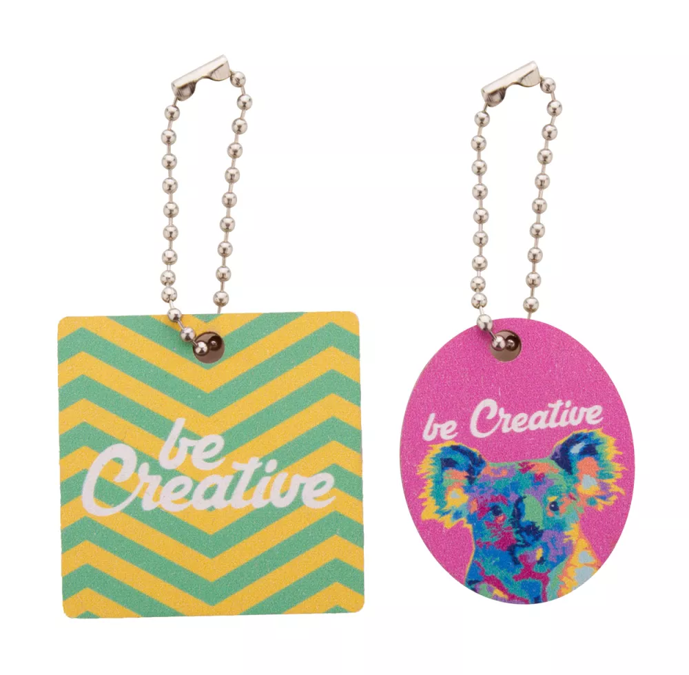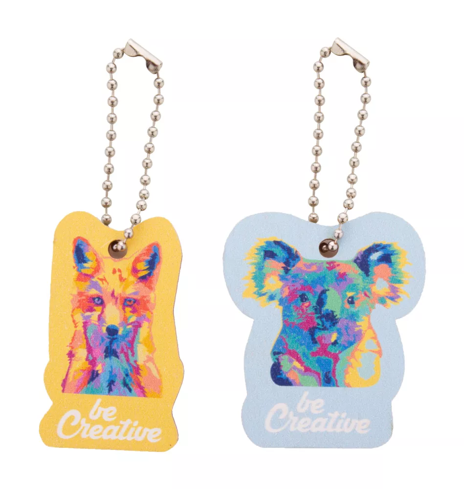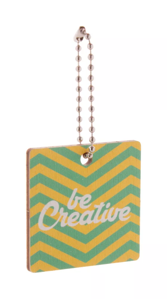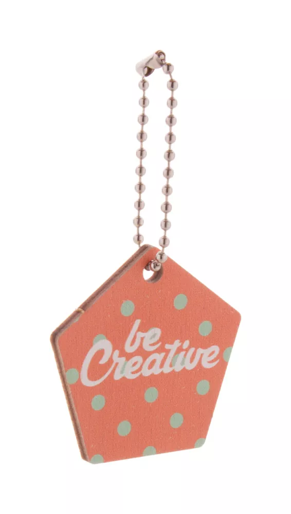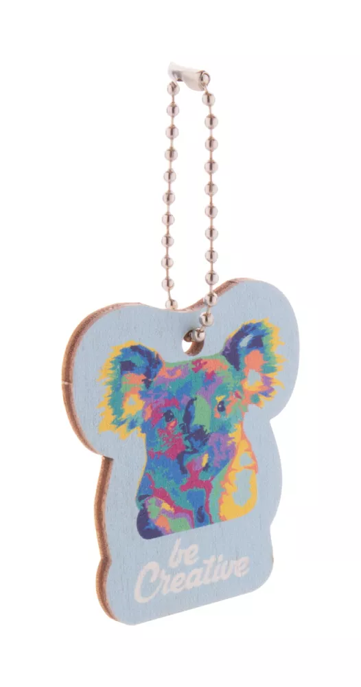 Personalizowany brelok ze sklejki brzozowej z kolorowym nadrukiem i metalowym łańcuszkiem. W indywidualnym kształcie - maksymalny wymiar: 45x45 mm. Cena zawiera nadruk UV LED z jednej strony. Min. ilość: 200 szt.