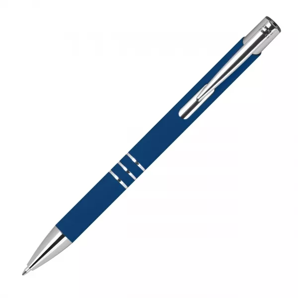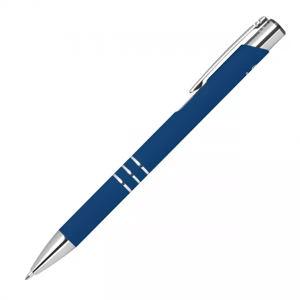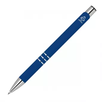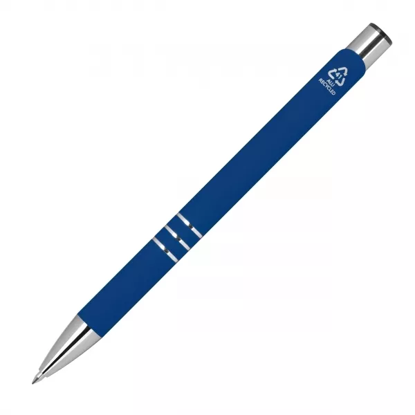Długopis wykonany z aluminium z recyklingu, z gumową powłoką i wkładem półżelowym, piszącym na niebiesko (0,7 mm).
