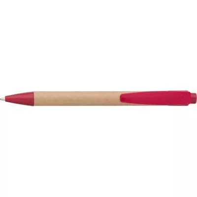 Długopis z kartonu z elementami ze słomy pszenicznej - czerwony (V9336-05)