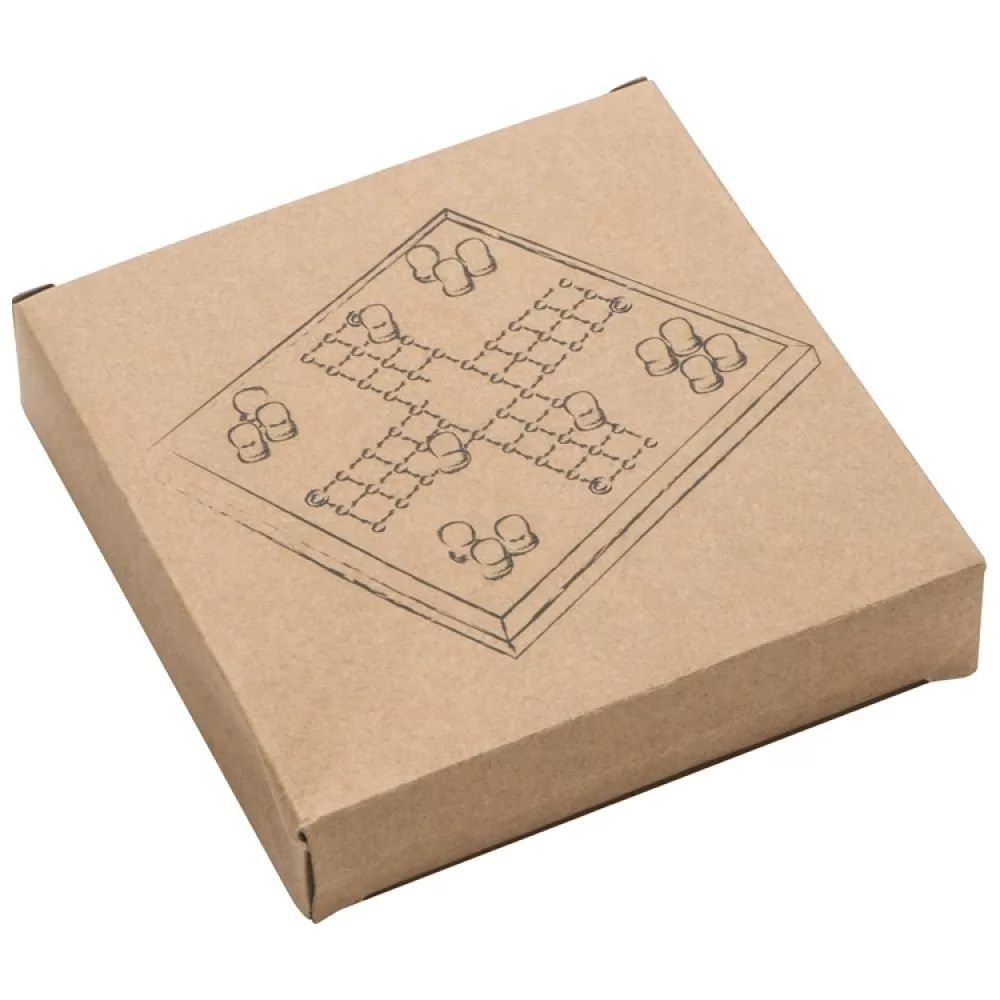 Klasyczna plansza do gry w chińczyka wykonana z drewna. Pionki można zaczepiać o planszę, co ułatwia grę podczas podróży.