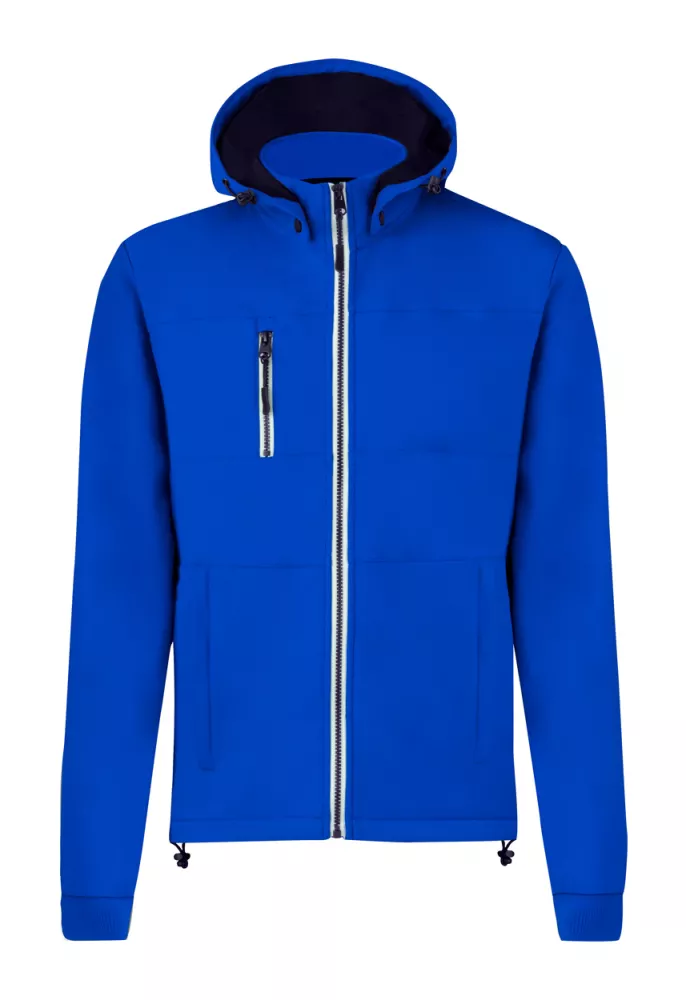 Wiatro i wodoodporna, zapinana na zamek kurtka softshell z 2 kieszeniami bocznymi, 1 kieszenią przednią, kołnierzem ze stójką i odpinanym kapturem. 100% poliester, 300 g/m².