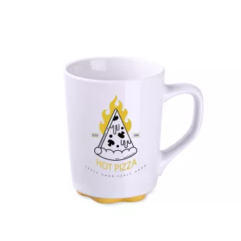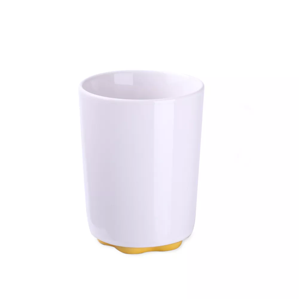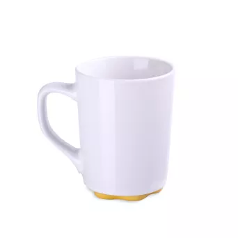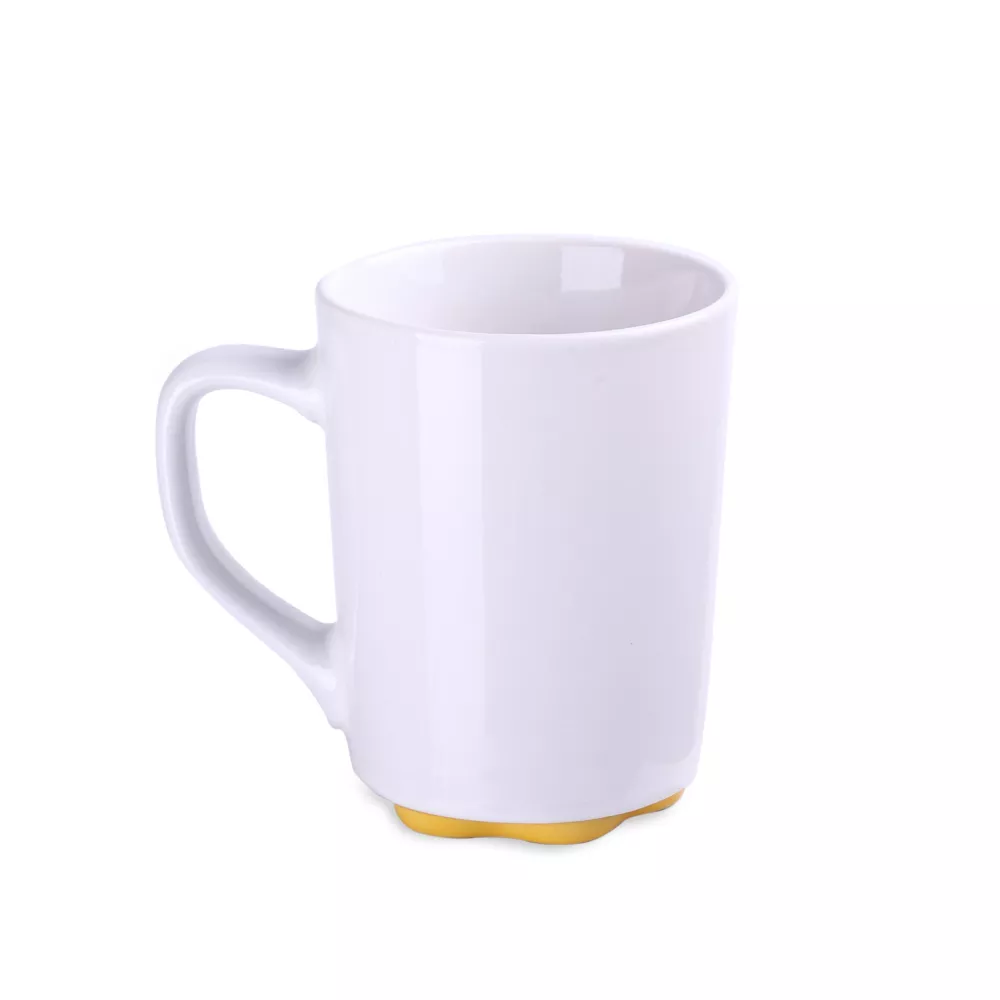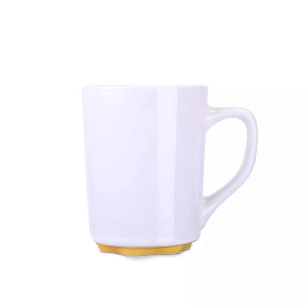 Biały kubek z oryginalnym i ciekawym spodem występującym w kilku kolorach. Proste ścianki dają duże możliwości w zakresie zdobień.