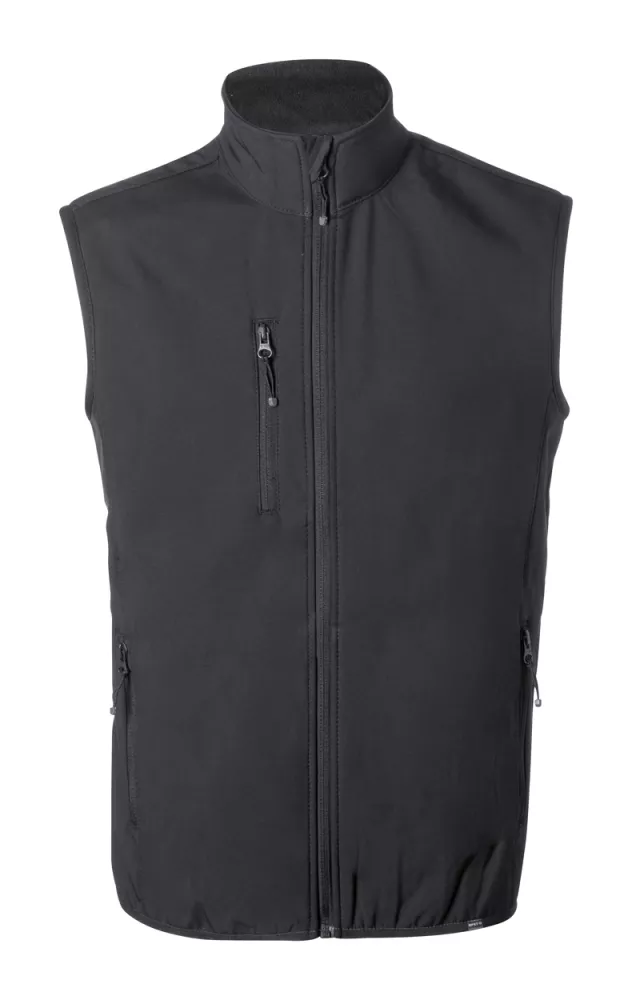 Oddychająca, wodoodporna i wiatroodporna, zapinana na zamek kamizelka softshell RPET z kieszenią na piersi i bocznymi kieszeniami. Na zewnątrz: 92% poliester RPET i 8% elastan. Wewnątrz: mikropolar 100% poliester RPET. 300 g/m².