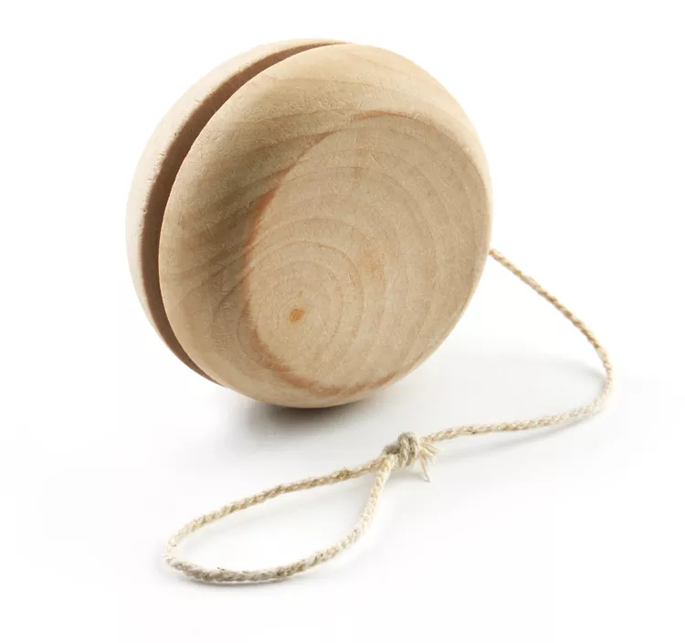 Klasyczne jo-jo wykonane z drewna. Powierzchnia surowa, nielakierowana.