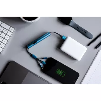 Kabel do ładowania z 4 końcówkami: USB, micro USB, USB typu C oraz końcówką kompatybilną z urządzeniami iOS, końcówka USB typu C z funkcją transferu danych, duża powierzchnia znakowania