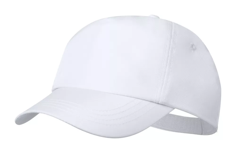 Czapka 5 panelowa zapinana na rzep. Poliester 180 g/m² RPET.