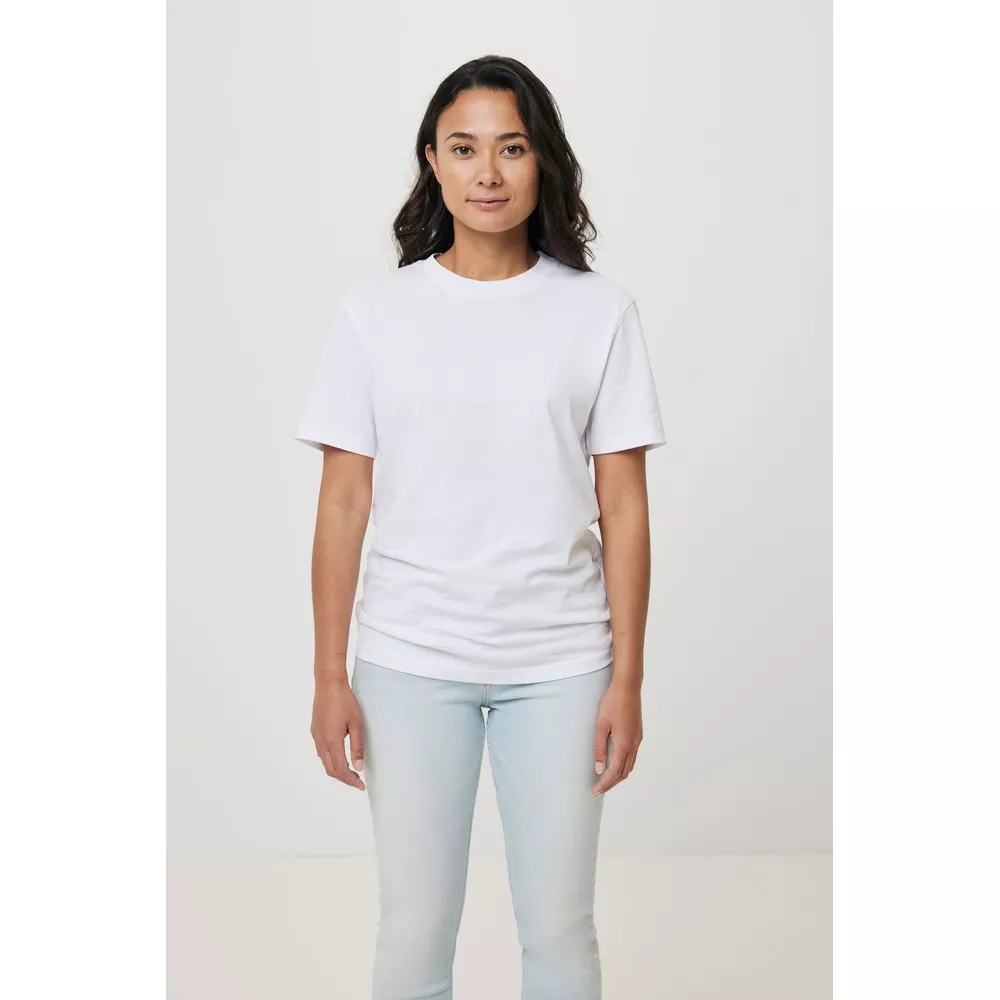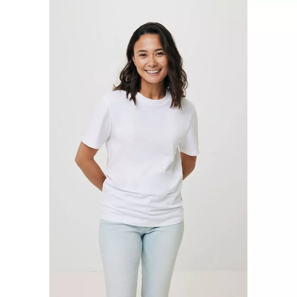 Koszulka, unisex, regularny krój, okrągły dekolt, krótkie rękawy, wykonana w 50% z bawełny z recyklingu i w 50% z bawełny organicznej, bez dodatku poliestru, posiada wbudowany znacznik AWARE™, który potwierdza wykorzystanie materiałów z recyklingu, posiada kod QR na metce, który prowadzi do cyfrowego paszportu produktu, 2% wpływów z każdego sprzedanego produktu z kolekcji Impact jest przekazywane na rzecz Water.org