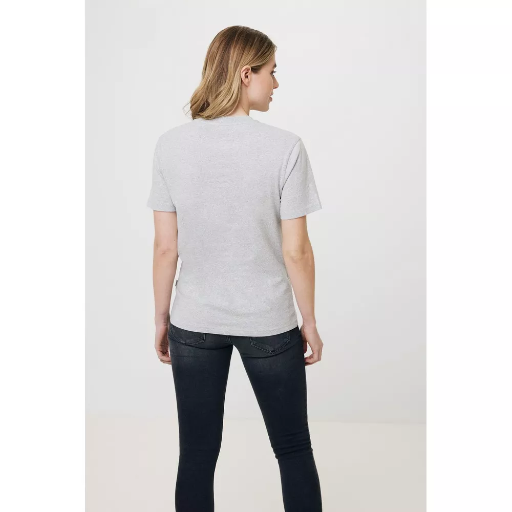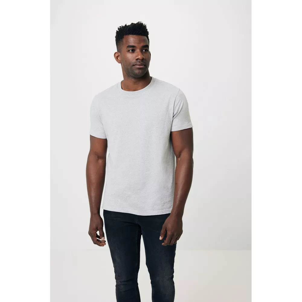 Koszulka, unisex, regularny krój, okrągły dekolt, splot Single Jersey, krótkie rękawy, niebarwiona bawełna, wykonana w 50% z bawełny z recyklingu i w 50% z bawełny organicznej o gramaturze 180 g/m2, bez dodatku poliestru, posiada wbudowany znacznik AWARE™, który potwierdza wykorzystanie materiałów z recyklingu, posiada kod QR na metce, który prowadzi do cyfrowego paszportu produktu, 2% wpływów z każdego sprzedanego produktu z kolekcji Impact jest przekazywane na rzecz Water.org