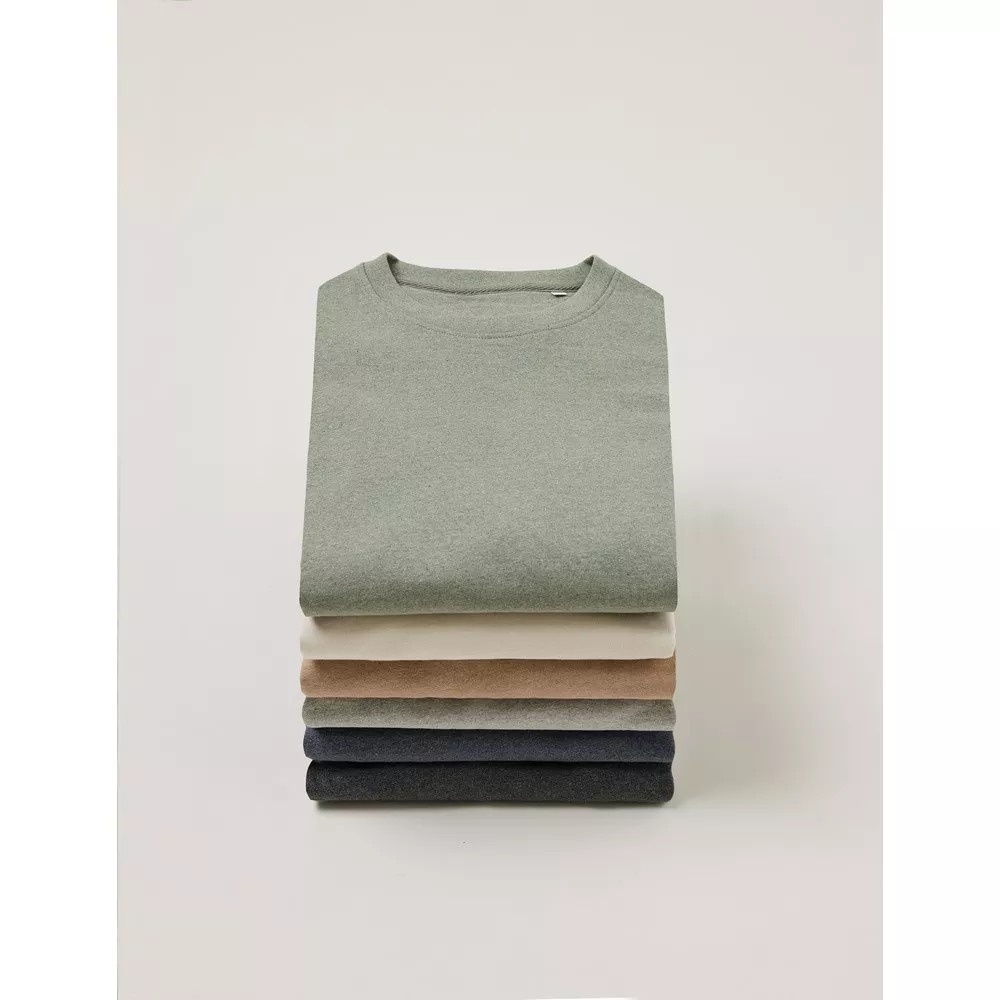 Koszulka, unisex, regularny krój, okrągły dekolt, krótkie rękawy, niebarwiona bawełna, wykonana w 50% z bawełny z recyklingu i w 50% z bawełny organicznej, bez dodatku poliestru, posiada wbudowany znacznik AWARE™, który potwierdza wykorzystanie materiałów z recyklingu, posiada kod QR na metce, który prowadzi do cyfrowego paszportu produktu, 2% wpływów z każdego sprzedanego produktu z kolekcji Impact jest przekazywane na rzecz Water.org