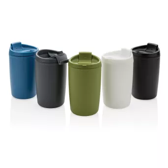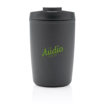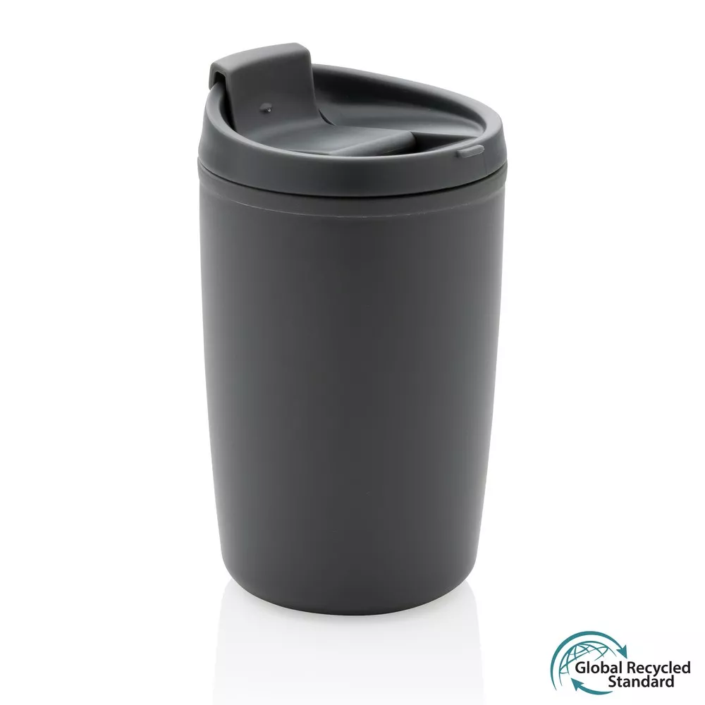 Kubek podróżny 300 ml, nie wymaga obsługi oburącz, wykonany z PP z recyklingu z certyfikatem GRS (Global Recycled Standard) który gwarantuje, że wykorzystane materiały pochodzą z recyklingu, całkowita zawartość materiału z recyklingu obliczona w oparciu o wagę całkowitą przedmiotu: 96%, można myć w zmywarce i używać w kuchence mikrofalowej, w pudełku z papieru kraftowego z certyfikatem FSC® (Forest Stewardship Council), nie zawiera BPA
