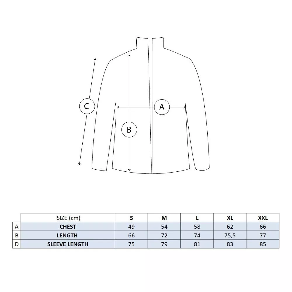| Materiał | soft shell, poliester (92%), elastan (na zewnątrz) 8% 300 g/m2, poliester microfleece (100%) 300 g/m2 (wewnątrz) |