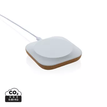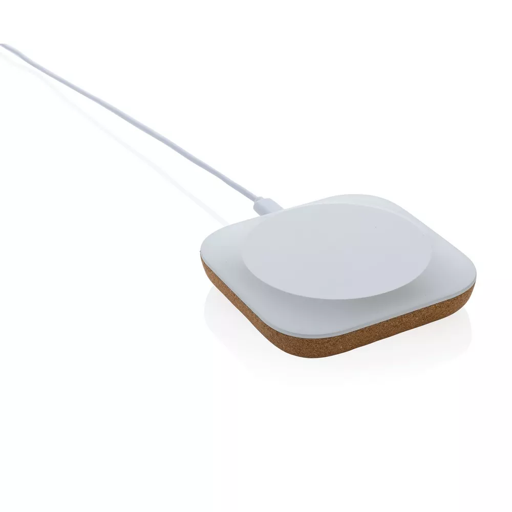 Ładowarka bezprzewodowa 10W, wykonana z korka z certyfikatem FSC® oraz ABS z recyklingu z certyfikatem RCS, całkowita zawartość materiałów z recyklingu obliczona na podstawie wagi całkowitej przedmiotu: 33%, działa z telefonami posiadającymi możliwość ładowania indukcyjnego, wejście USB typu C 5V/2A, 9V/2A, 120 cm kabel z TPE z recyklingu z certyfikatem RSC w komplecie, w pudełku z papieru kraftowego z certyfikatem FSC® mix