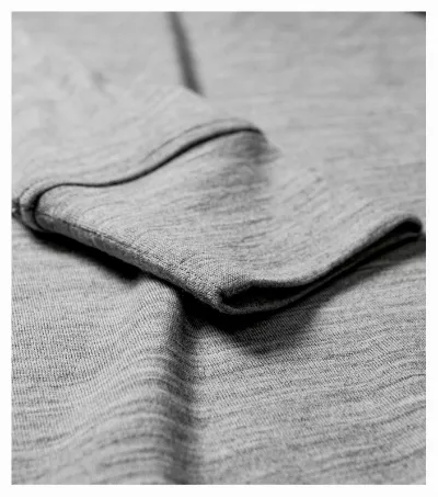 bardzo delikatna wełna merynosowa, odporny na zagniecenia i wysoce oddychający materiał, właściwości termoregulacyjne i antybakteryjne, zdolność odprowadzania wilgoci i absorpcji zapachów, krój slim-fit ze szwami bocznymi, szersza okrągła lamówka , wąska lamówka z materiału wierzchniego, lamówka na karku wzmocniona taśmą z materiału wierzchniego, szew wzmacniający na ramionach, długie rękawy z mankietami, zalecane suszenie w pozycji poziomej