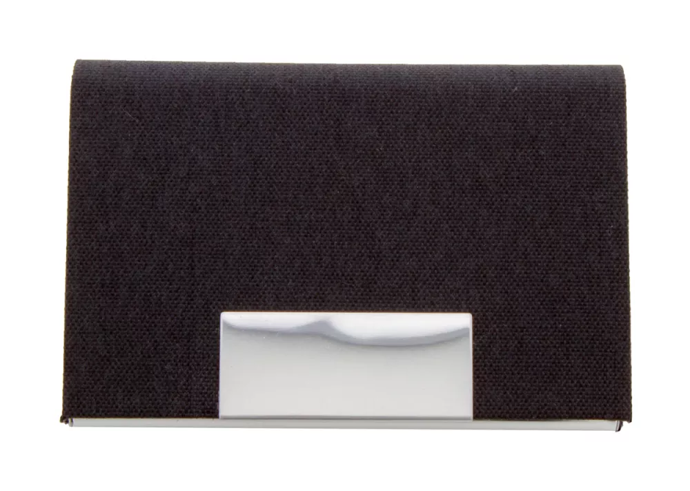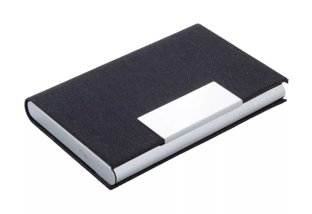 Metalowy wizytownik pokryty poliestrem RPET z metalową częścią do nadruku.
