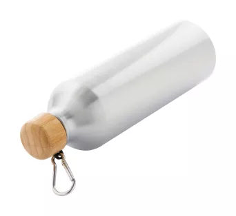 Butelka aluminiowa z bambusową pokrywką i karabińczykiem, 800 ml.
