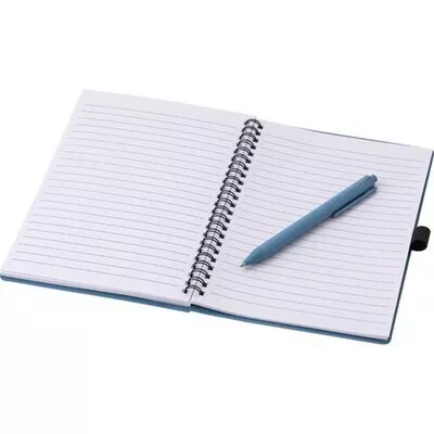 Notatnik ok. A5 (70 kartek w linie), okładka ze słomy pszenicznej i PP, długopis ze słomy pszenicznej, spiralne bindowanie