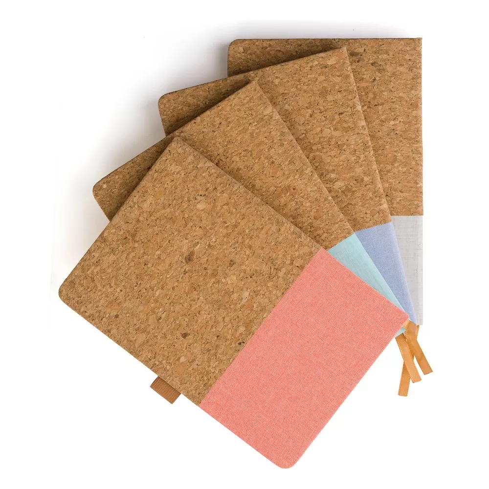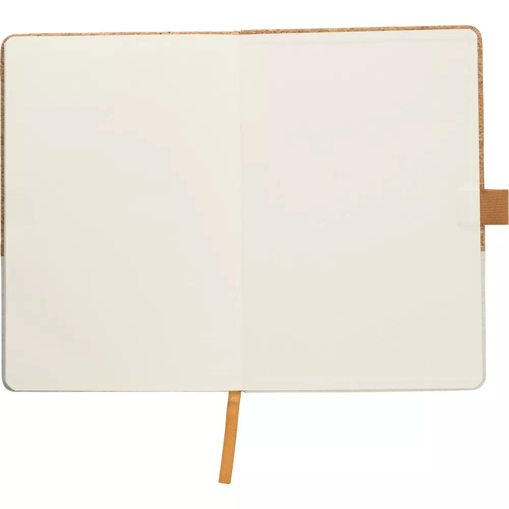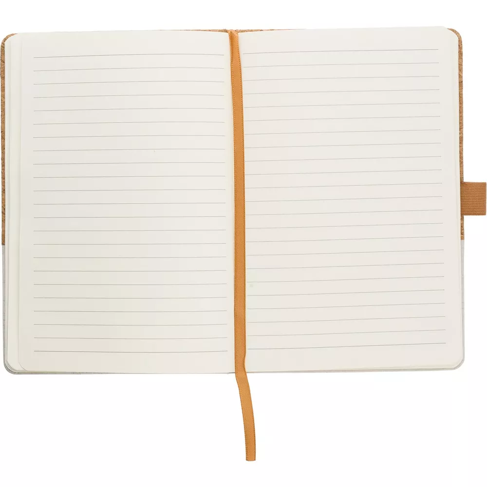 Notatnik A5 (80 kartek w linie), twarda okładka wykonana z korka i bawełny, miejsce na przybory do pisania, tasiemka zakładkowa
