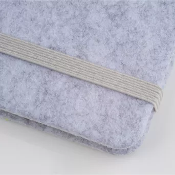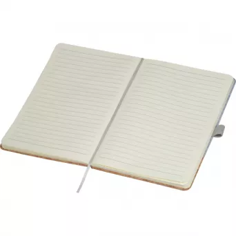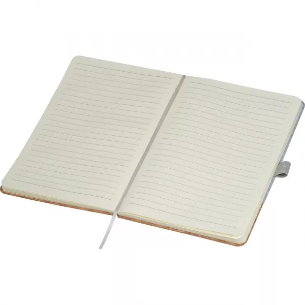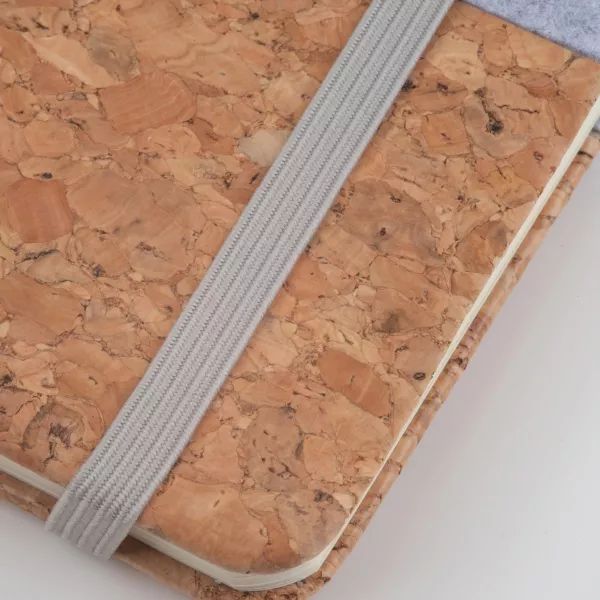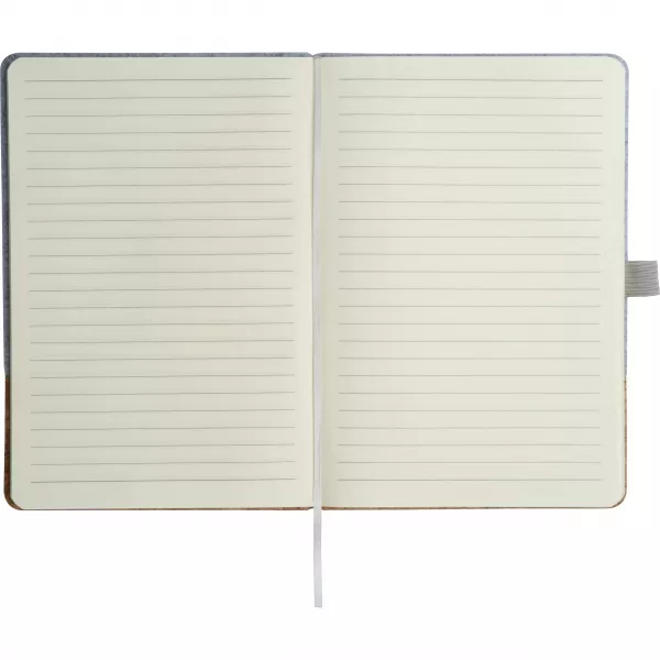 Notes A5 w oprawie z filcu i korka pochodzących z recyklingu, z gumką do zamykania i pętelką na długopis. Notes posiada 80 kartek w linie.