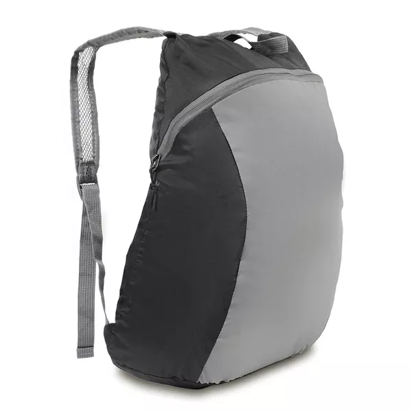 Lekki plecak z przednim panelem odbijającym światło i boczną kieszenią. Kompaktowy, można go spakować w małe etui (9x13 cm).