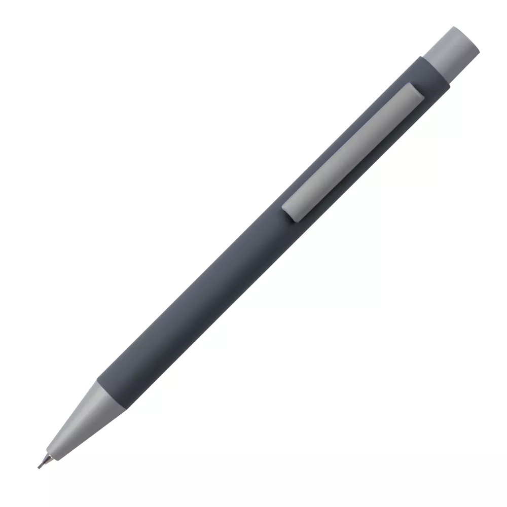 Mechaniczny ołówek wykonany z metalu, z gumową powłoką i rysikiem 0,5mm.