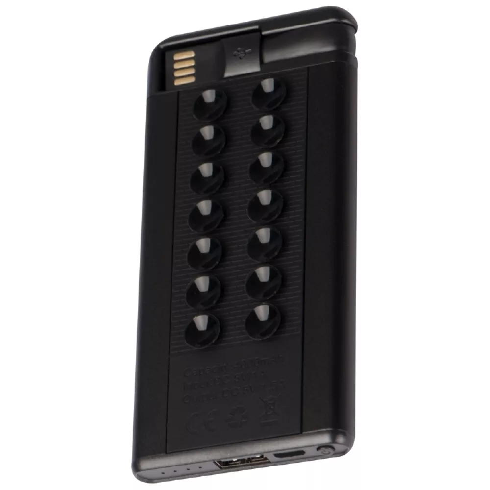 Reklamowy power bank dla firm o pojemności 4000 mAh z kablem ładującym oraz przyssawkami, dzięki którym power bank można przyczepić do telefonu. Logotyp można umieścić bezpośrednio na produkcie. Jeżeli szukasz praktyczny i sprawdzony gadżet z logo postaw na powerbank z logo!
