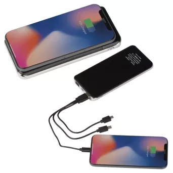 Bezprzewodowy power bank dla firm, o pojemności 8000mAh - wystarczy położyć telefon na power banku, aby go naładować. W zestawie kable do ładowania urządzeń z systemem Android i iOS. Logotyp można umieścić bezpośrednio na produkcie. Jeżeli szukasz praktyczny i sprawdzony gadżet z logo postaw na powerbank z logo!