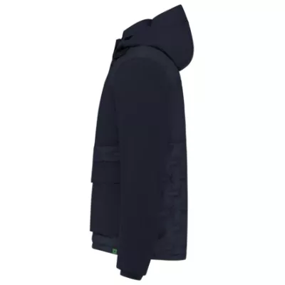 poliester pochodzący z recyklingu, wiatroodporny i wodoodporny materiał, certyfikacja zgodnie z normą ČSN EN 14058 (832766) , nowoczesny miękki wygląd, prosty krój ze szwami bocznymi, odpinany kaptur, kaptur ma boczne otwory zapewniające dodatkową widoczność, regulacja otworu kaptura i jego dolnej części za pomocą elastycznego sznurka, stójka z dzianiny ściągaczowej po wewnętrznej stronie, taśma odblaskowa na kapturze, zamek błyskawiczny na całej długości z ochroną podbródka i klapą sztormową zamykaną na kryte zatrzaski, przednie kieszenie z podwójnym wejściem: górnym i bocznym, lewa strona klatki piersiowej jest wykonana z materiału softshell, gotowego do ewentualnego wykonania nadruku, zapinana na zamek kieszeń na piersi, z wewnętrzną szlufką na identyfikator, 2 wewnętrzne kieszenie, kieszenie zapinane na zamek YKK, dostęp dla brandingu, dolna lamówka wykonana ze ściągaczem, certyfikacja zgodnie z normami EN 14058:2017 (klasa 3-2-x-x), EN ISO 13688:2013, Tricorp kod produktu: 402711