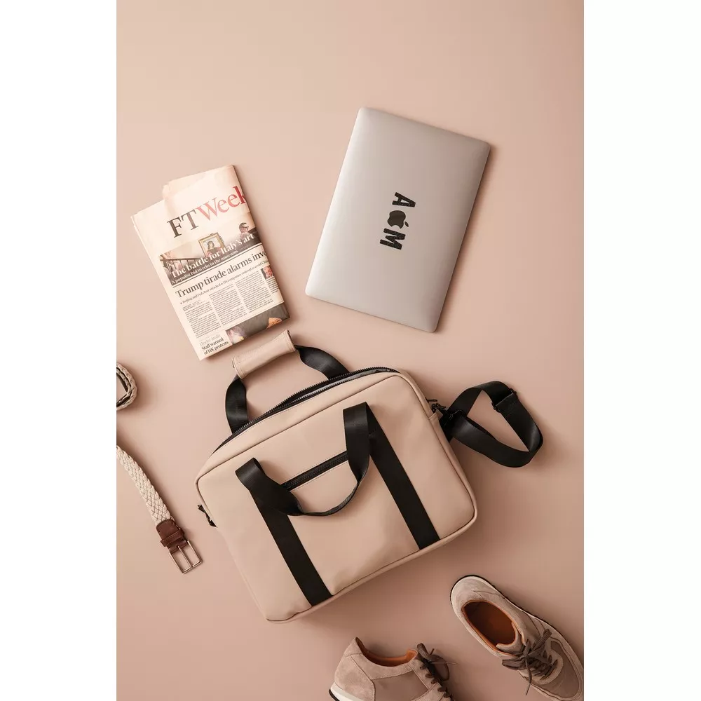Torba na laptopa, wewnątrz kieszenie na drobiazgi, pasek do zamocowania na walizce, wykonana z wodoodpornego materiału, regulowany pasek na ramię