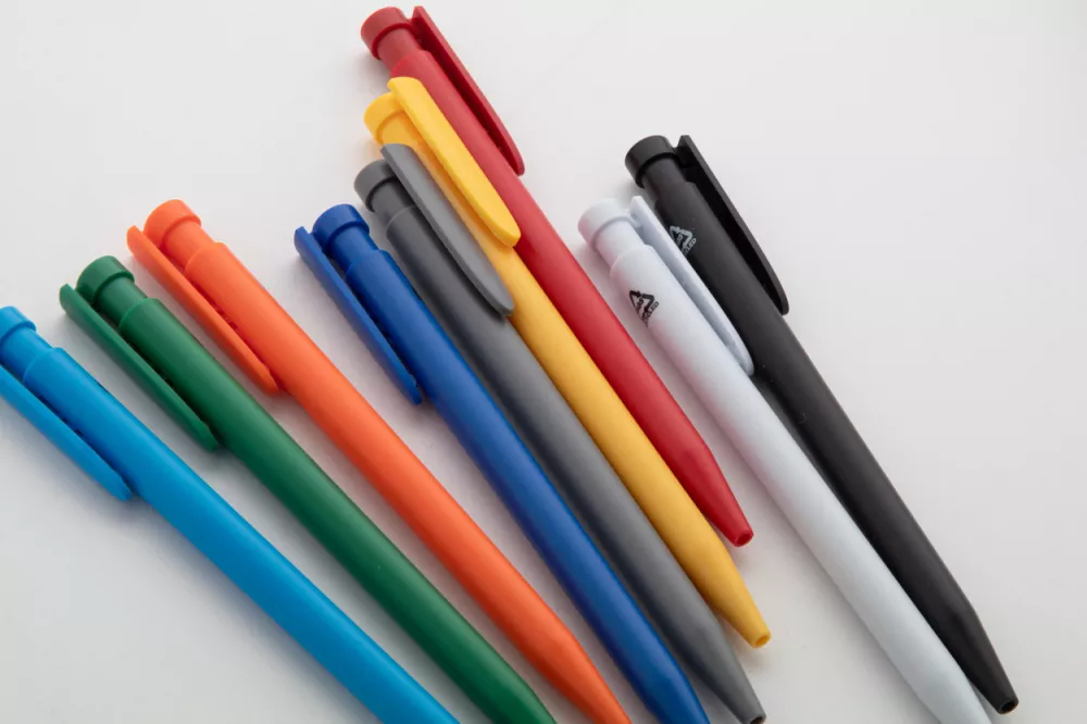 Długopis ABS z recyklingu z niebieskim wkładem.