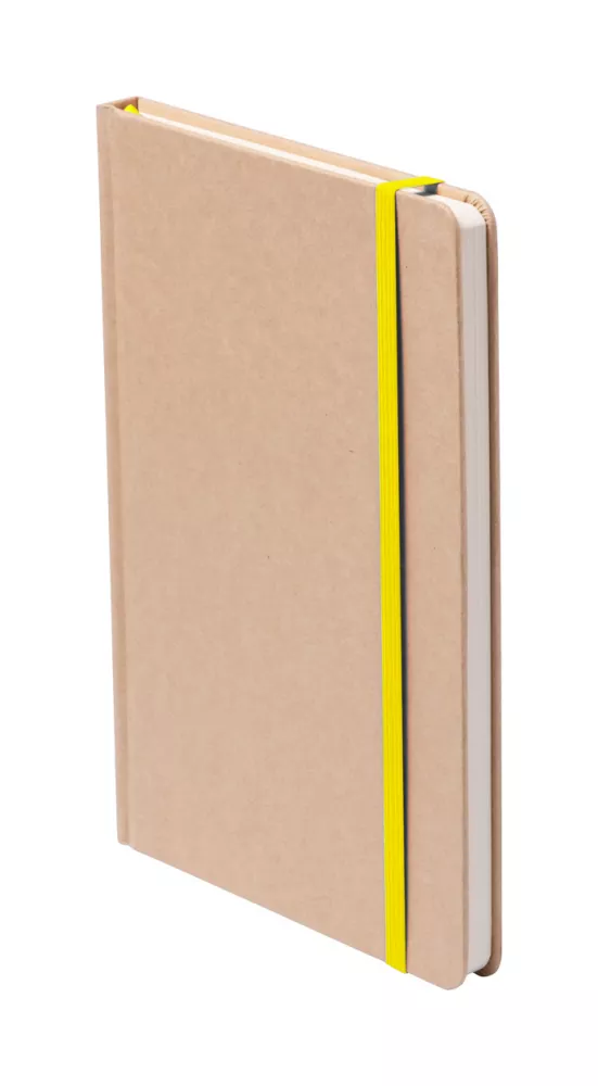 Notes w kartonie z recyklingu. Posiada 100 czystych kartek, kolorową zakładkę i gumkę.