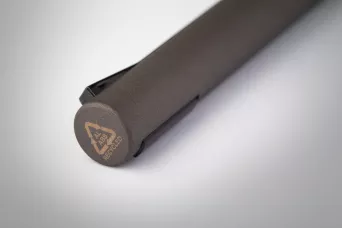 Długopis z aluminium pochodzącego z recyklingu, w matowym, metalicznym kolorze, z górnym korpusem z tworzywa ABS pochodzącego z recyklingu i ze specjalnym mechanizmem klipa. Z niebieskim wkładem.