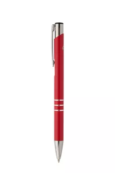 Aluminiowy długopis z recyklingu z niebieskim wkładem.