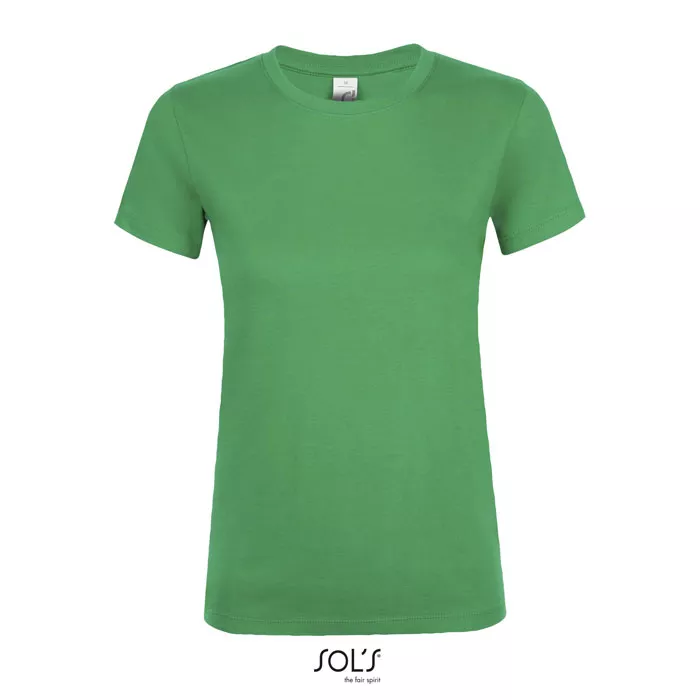 Damska koszulka SOL'S REGENT z dzianiny single jersey o nowoczesnym, dopasowanym kroju. Wzmocniony szew przy dekolcie, prążkowany kołnierz, szew boczny. Materiał : single jersey 150g / m², 100% bawełna typu ring-spun. OEKO-TEX. Rozmiar: XS-XXL.