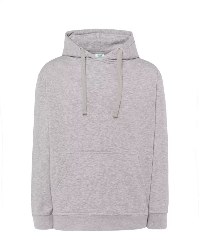 Bluza dresowa z kapturem. Naszywane kieszenie. Wzmocnione lycrą ściągacze. Sznurek ściagający w kapturze. 35% bawełna - 65% poliester.