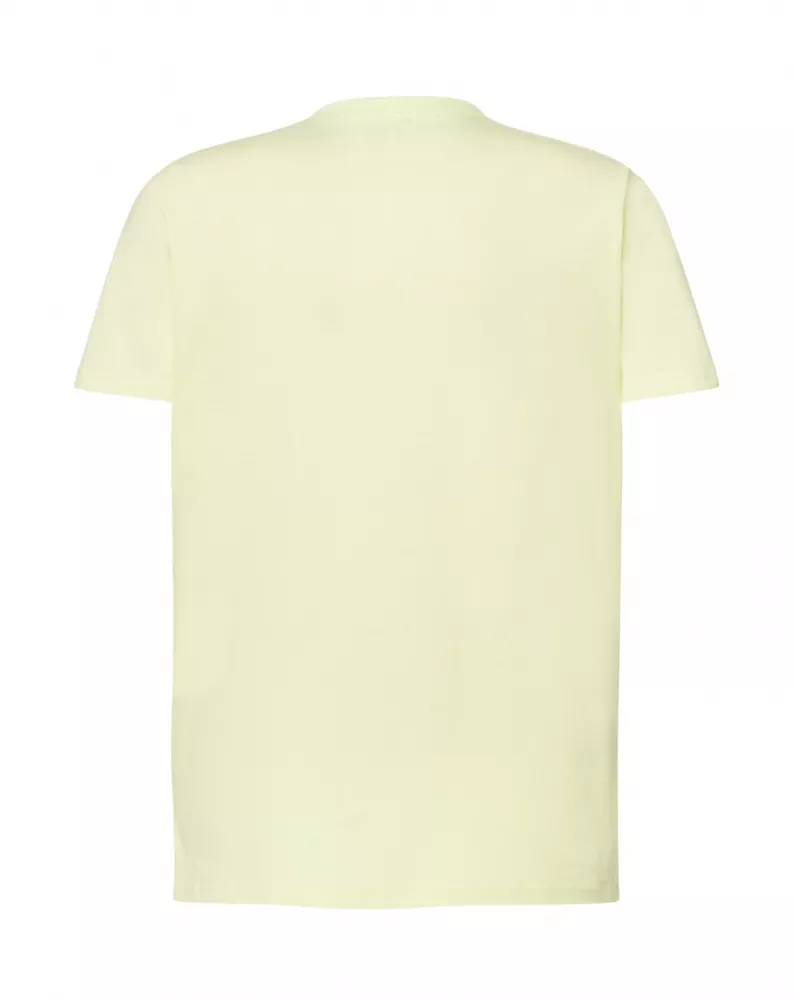 T-shirt męski z krótkim rękawem. Brak bocznych szwów. Podwójne szwy na ramionach. Wzmocniony lycrą ściągacz. Taśma wzmacniająca. 100% bawełna stabilizowana.