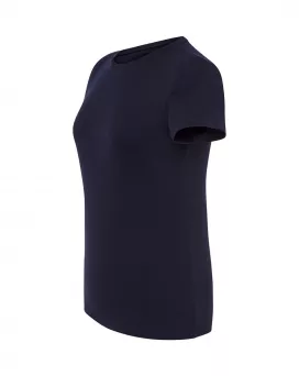 T-shirt damski z krótkim rękawem. Krój dopasowany do sylwetki. Ściągacz przy szyi. Szwy boczne. Podwójne szwy na ramionach i spodzie koszulki. Łatwo usuwalna metka. 100 % bawełna.