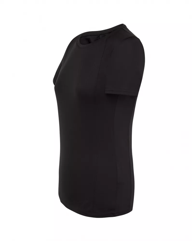 Damski t-shirt sportowy. Dekoracyjne przeszycia z przodu, z tyłu i na rękawach. Krój dopasowany do sylwetki. Oddychający materiał szybkoschnący. 100% poliester teksturowany.