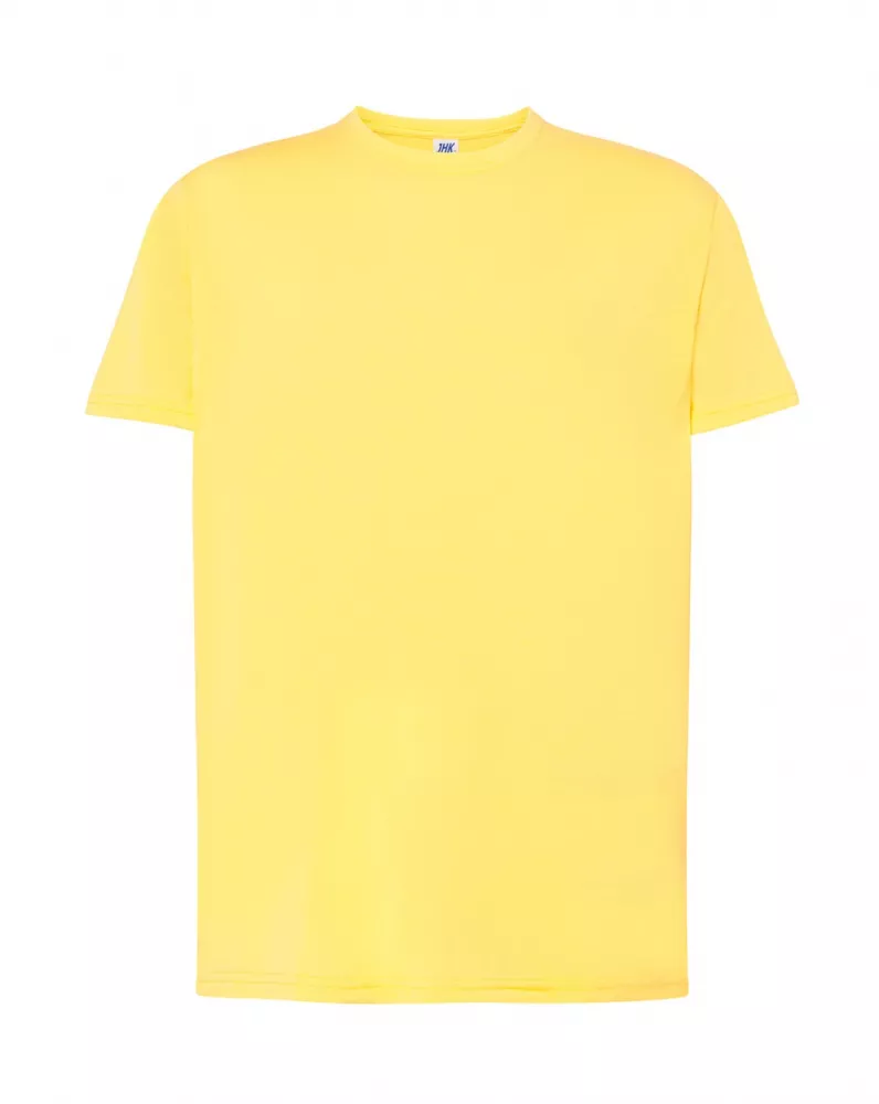 T-shirt męski z krótkim rękawem. Brak bocznych szwów. Podwójne szwy na ramionach. Wzmocniony lycrą ściągacz. Taśma wzmacniająca. 100% bawełna stabilizowana.