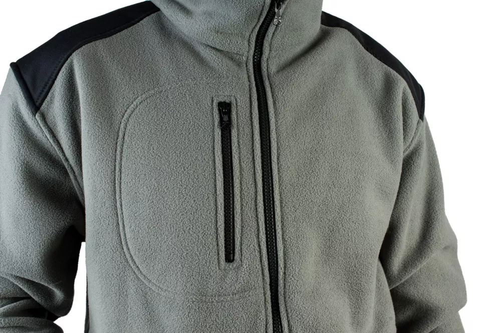 Bluza wykonana z POLARU. Polar z wykończeniem antypilingowym. Polar jest gruby i posiada bardzo dobre właściwości cieplne, przyjemny w dotyku, 2 kieszenie zasuwane zamkami błyskawicznymi oraz dodatkowa kieszeń na piersi z zamkiem. W dolnej częśći możliwa regulacja na gume ze stoperami. Bluza na karku, barkach i łokciach posiada wzmocnienia. Możliwe zastosowanie dowolnej kolorystyki i łączenia kolorów w produkcje: