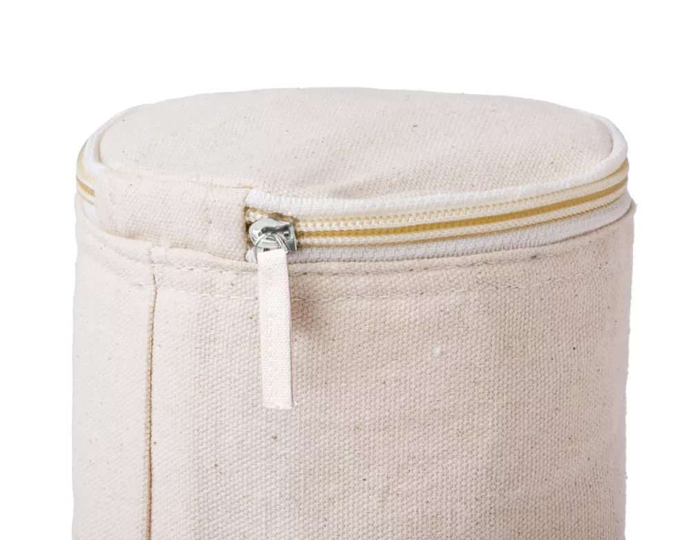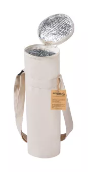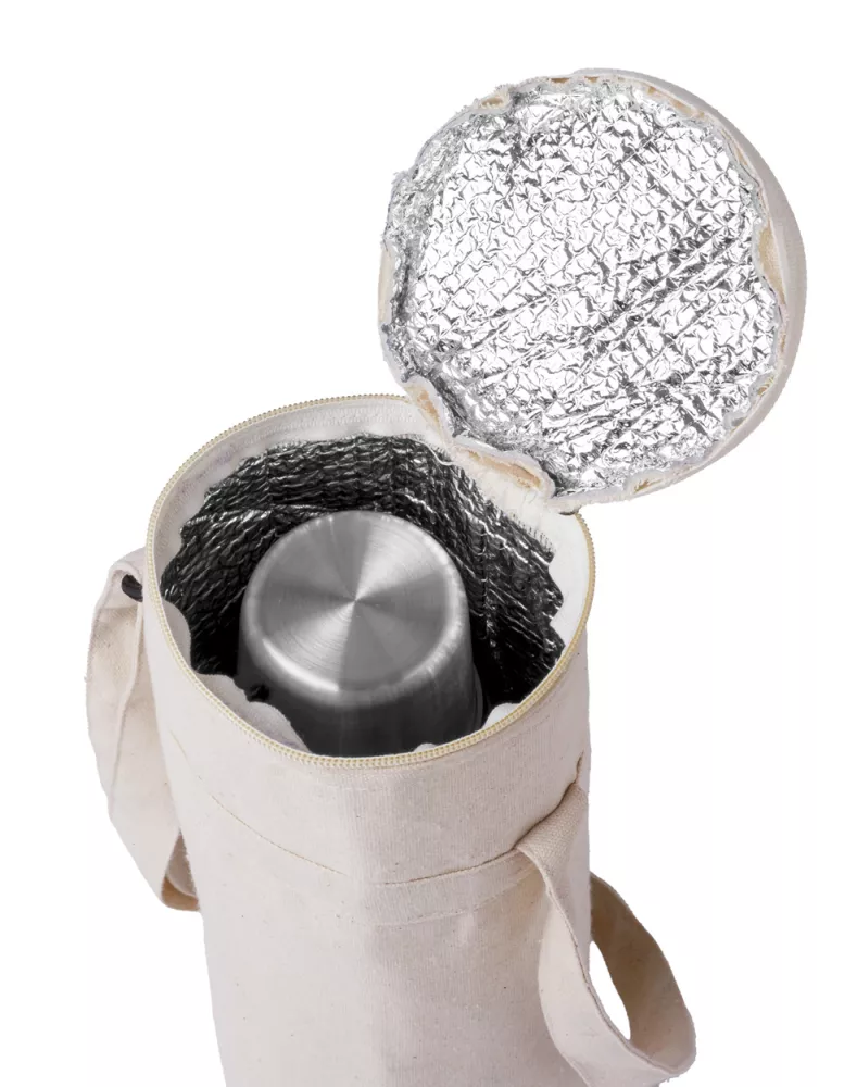 Torba termoizolacyjna na butelki z bawełny pochodzącej z recyklingu, z aluminiową wyściółką i paskiem na ramię.