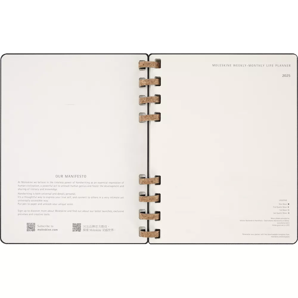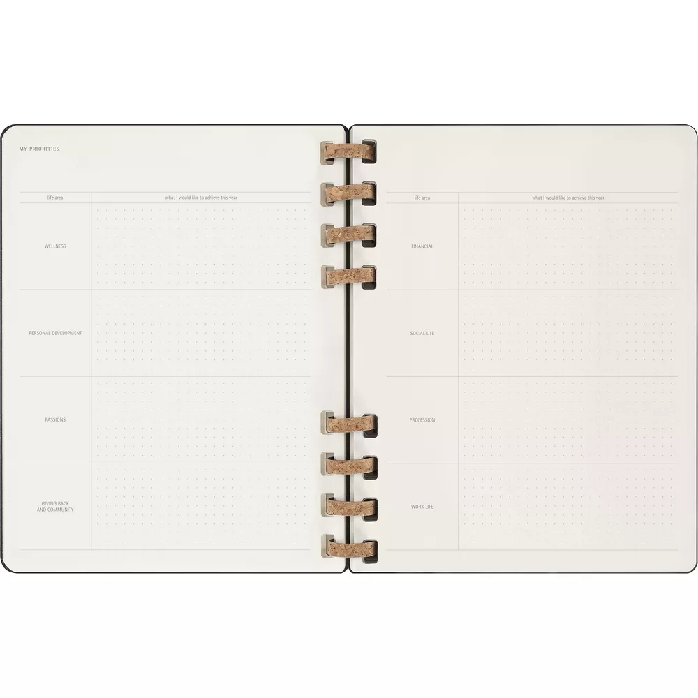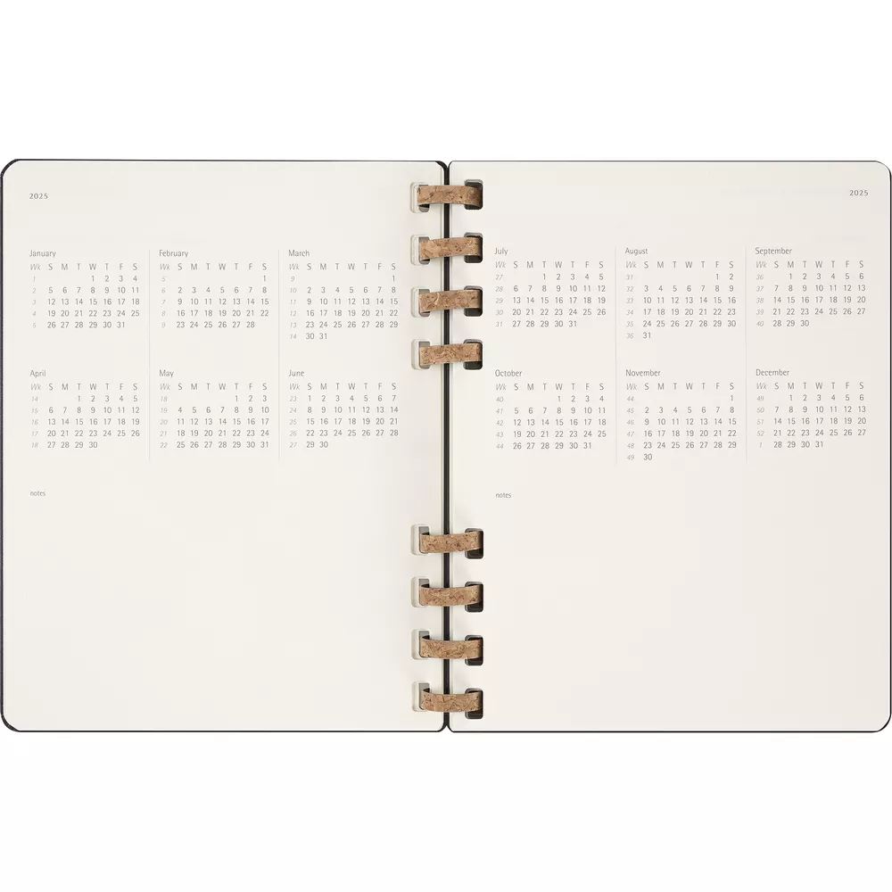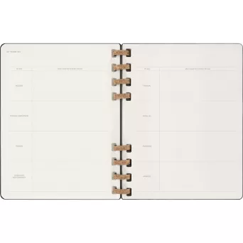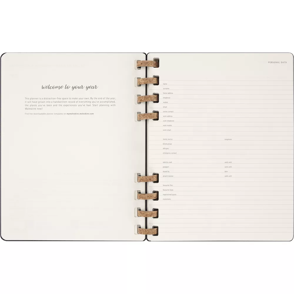 Spiralny kalendarz XL (ok. B5) MOLESKINE Life, układ miesięczny oraz tygodniowy-horyzontalny (200 str.), elastyczna opaska do zamykania
