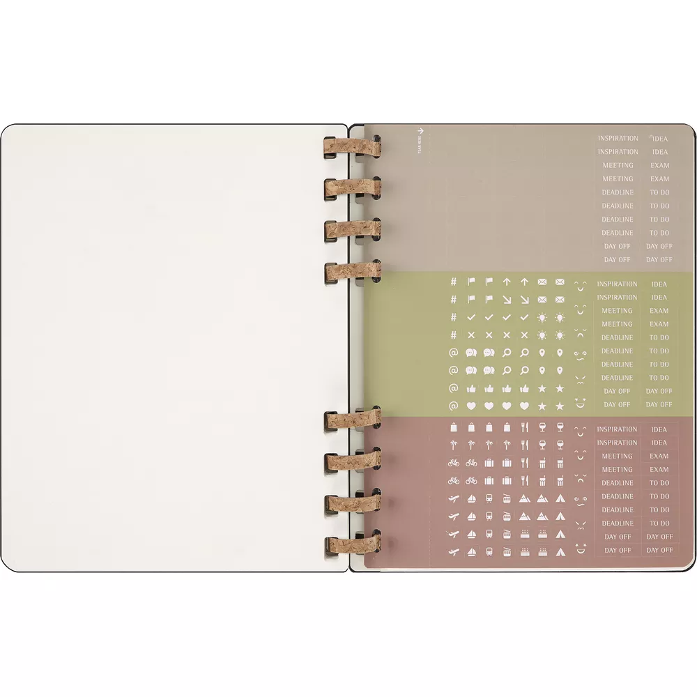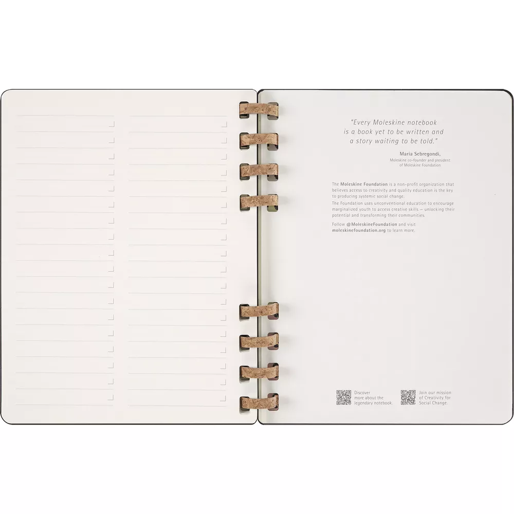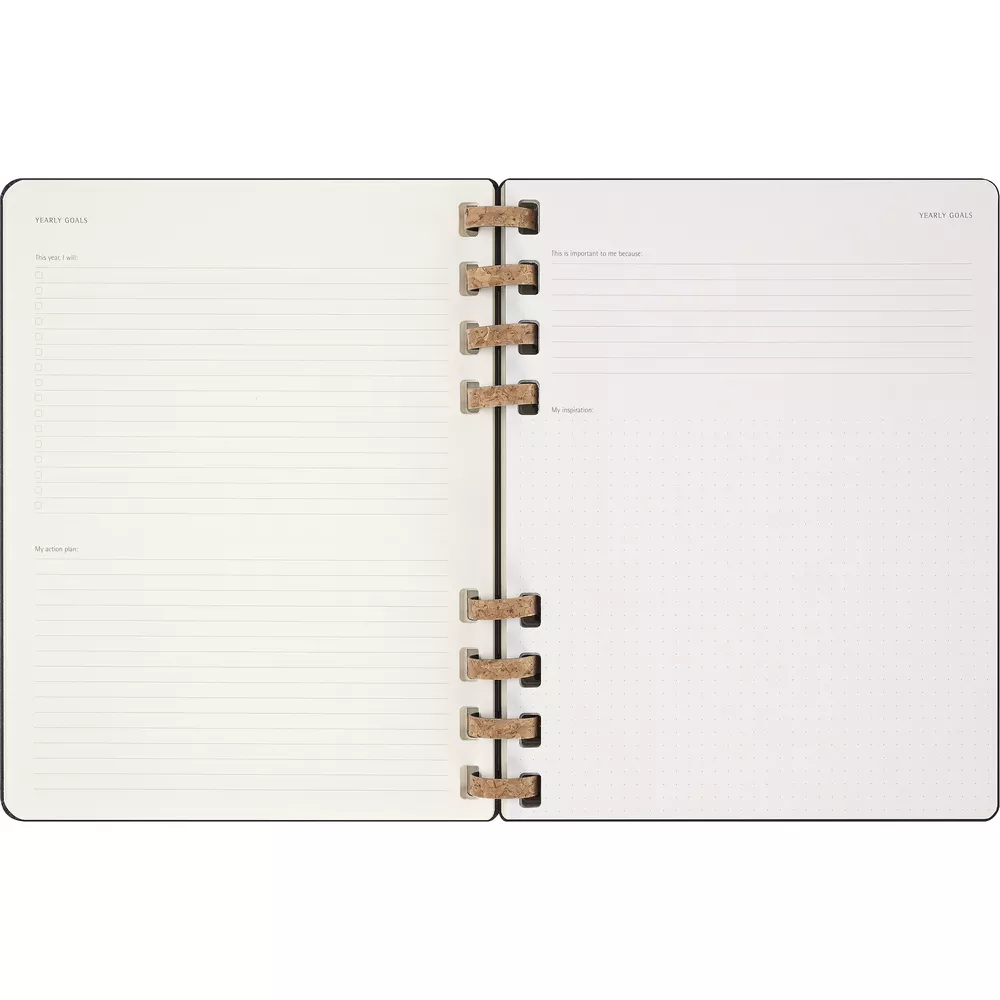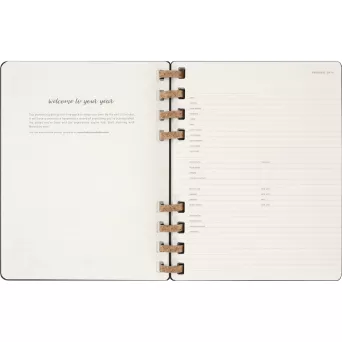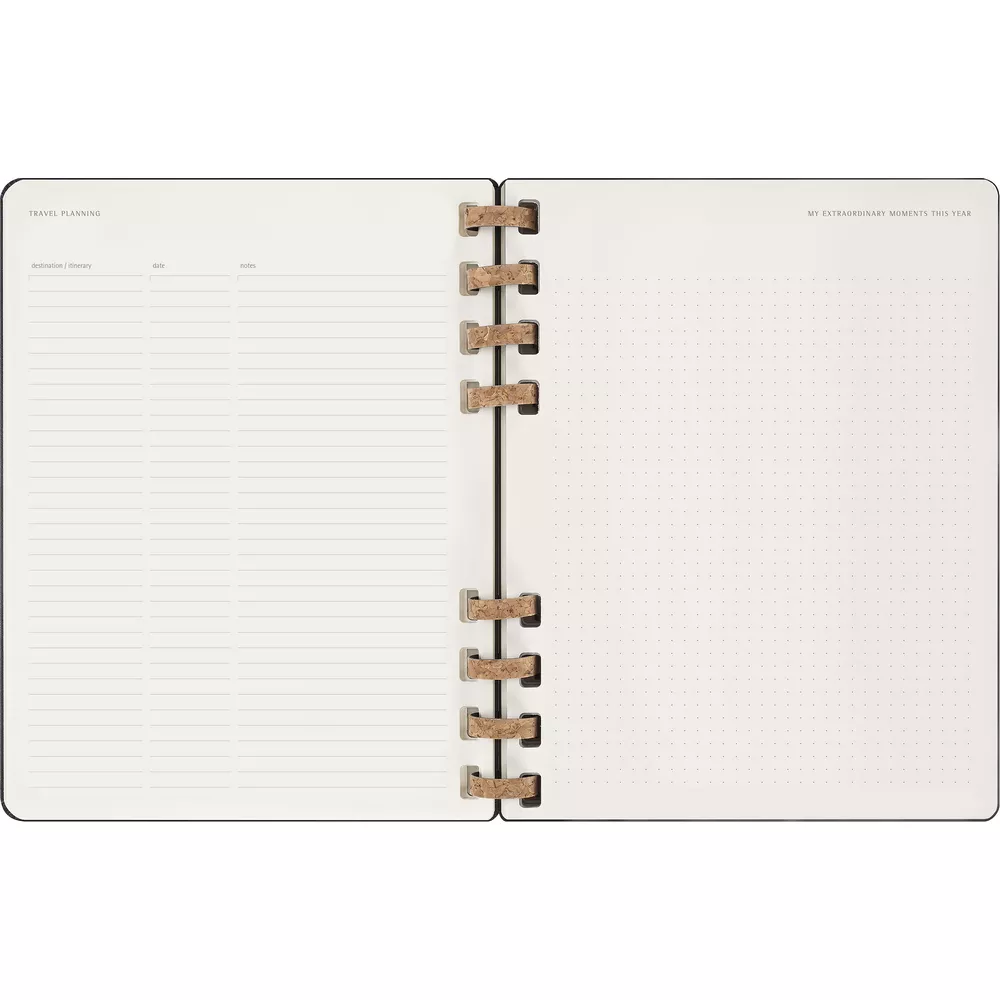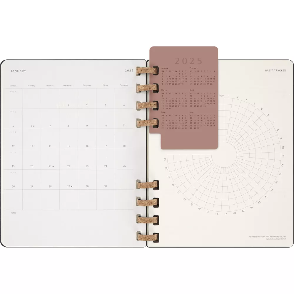 Spiralny kalendarz XL (ok. B5) MOLESKINE Life, układ miesięczny oraz tygodniowy-horyzontalny (200 str.), elastyczna opaska do zamykania