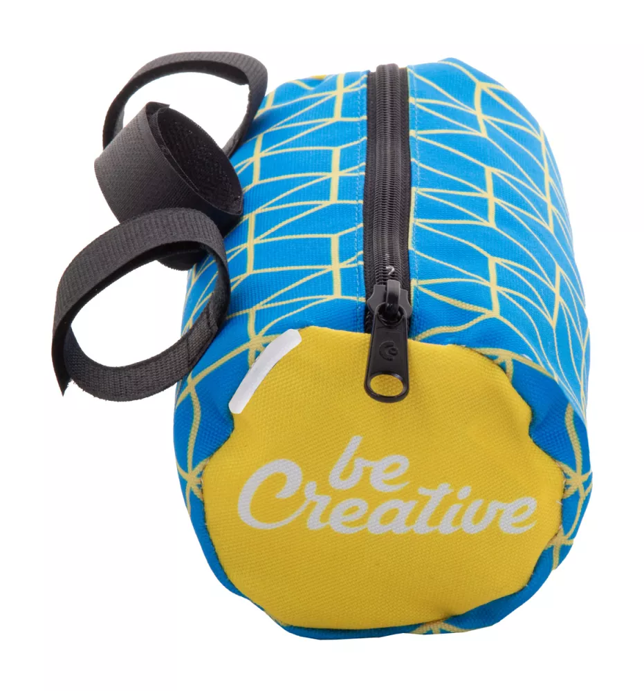 Personalizowana, zapinana na zamek torba rowerowa na kierownicę z poliestru 600D RPET z regulowanymi paskami na rzepy. Z nadrukowaną grafiką sublimacyjną na całej powierzchni i charakterystyczną metką RPET. Min. ilość: 25 szt.