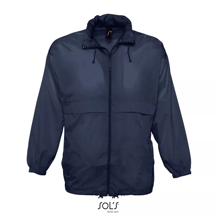 SOL'S SURF Wiatrówka unisex z zamkiem błyskawicznym. Jedna z najbardziej opłacalnych wiatrówek na rynku. Wiatroodporna i wodoodporna. Dwie zapinane kieszenie, kołnierz zapinany na zamek z ukrytym w środku kapturem. Sznurek u dołu, elastyczne mankiety, otwory wentylacyjne. Detale tkaniny: 100% nylon 210T 210 g / m², wodoodporny.