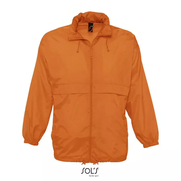 SOL'S SURF Wiatrówka unisex z zamkiem błyskawicznym. Jedna z najbardziej opłacalnych wiatrówek na rynku. Wiatroodporna i wodoodporna. Dwie zapinane kieszenie, kołnierz zapinany na zamek z ukrytym w środku kapturem. Sznurek u dołu, elastyczne mankiety, otwory wentylacyjne. Detale tkaniny: 100% nylon 210T 210 g / m², wodoodporny.
